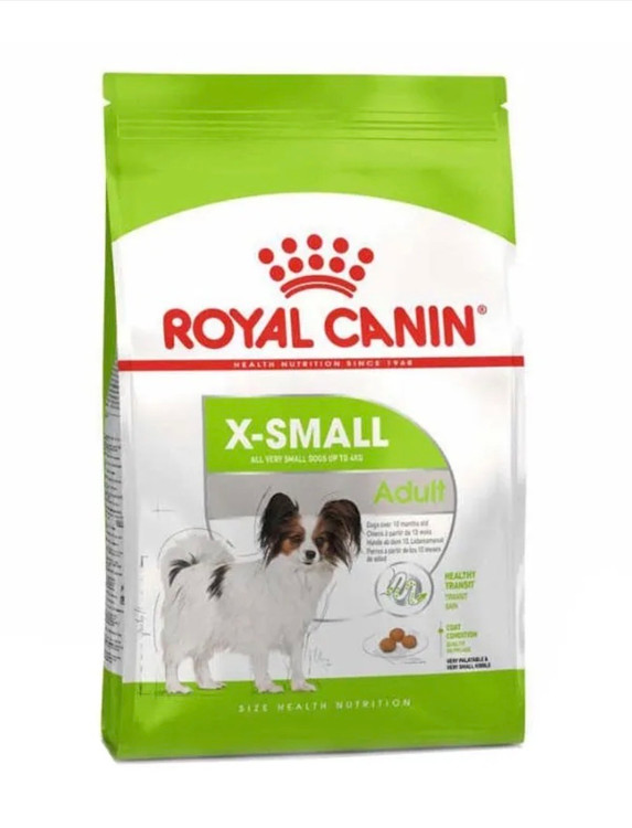 غذای خشک سگ رویال کنین ایکس اسمال ادالت (Royal Canin X-Small Adult Dry Dog Food)، ویژهی سگهایی با سن بالای ۱۰ ماه و وزن کمتر از ۵ کیلوگرم است. این غذا مخصوص سگهای بالغ نژادهای مینیاتوری میباشد و متناسب با نیازهای غذایی این نژادها فرموله شده است. این غذای سگ حاوی پروتئین هایی با کیفیت بسیار بالا است، که هضم آسانی دارند و تضمین کنندهی سلامت محفظهی داخل دهان، معده، رودهی بزرگ و کوچک و.. (دستگاه گوارش) میباشد. بافت دانههای غذا در دهان، جرمهای ایجاد شده بر روی دندانها را از بین برده و موجب تقویت لثهها میشود. ترکیب این پروتئینها با میزان متعادلی از فیبرها از جمله پسیلیوم، به تسهیل عملکرد روده کمک میکند. علاوه بر آن، سلامت دستگاه ادراری توسط این غذای سگ رویال کنین تضمین میشود. از دیگر مزایای استفاده از این غذا، بهبود کیفیت پوست و موی سگهای بالغ است، همچنین وجود انواع ویتامینهای مورد نیاز بدن سگ، به تقویت پوست منجر شده و مقاومت پوست بدن سگها را افزایش میدهد. در نهایت این غذا سبب افزایش سلامت عمومی بدن سگهای بسیار کوچک شده و همچنین شکل، اندازه و بافت غذا متناسب با دهان و آروارههای سگهای مینیاتوری است.