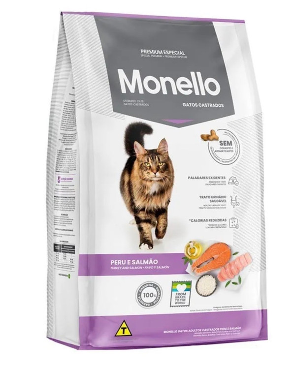 غذای خشک گربه عقیم شده مونلو با طعم ماهی سالمون و بوقلمون (Monello Sterilised Cat Dry Food With Salmon Fish & Turkey Flavor)، یک نوع غذای گربه است که برای گربههای عقیم شده مناسب است. این غذا حاوی ماهی سالمون و بوقلمون است که منابع پروتئینی با کیفیتی هستند. همچنین، این غذا حاوی ترکیبات مغذی متنوعی مانند ویتامینها، مواد معدنی و اسیدهای چرب اساسی میباشد.