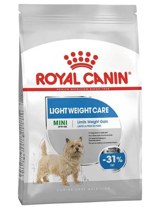 غذای خشک سگ بالغ لایت ویت رویال کنین مناسب کاهش وزن نژاد کوچک (Royal Canin Mini Light Weight Care Adult Dry Dog Food)،مناسب کنترل وزن برای سگهای مستعد افزایش وزن طراحی شده است. اضافه وزن میتواند سلامت سگ را به خطر بی اندازد و منجر به دیابت، مشکلات مفصلی شود و حتی عمر سگ را کاهش دهد. برای جلوگیری از مشکلات سلامتی حاصل از اضافه وزن با بروز اولین نشانههای چاقی به سرعت وارد عمل شوید و رژیم مناسب حیوان را شروع کنید. باید برای سگ خود رژیمی متعادل در نظر بگیرید تا حیوان دچار اضافه وزن و یا کمبود وزن و انرژی نشود. مشکل اضافه وزن در دنیای حیوانات نیز یک معضل مهم است. سگهای نژاد کوچک باید دارای وزن نرمالی باشند تا سلامت جسمشان حفظ شود.